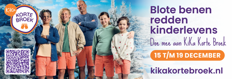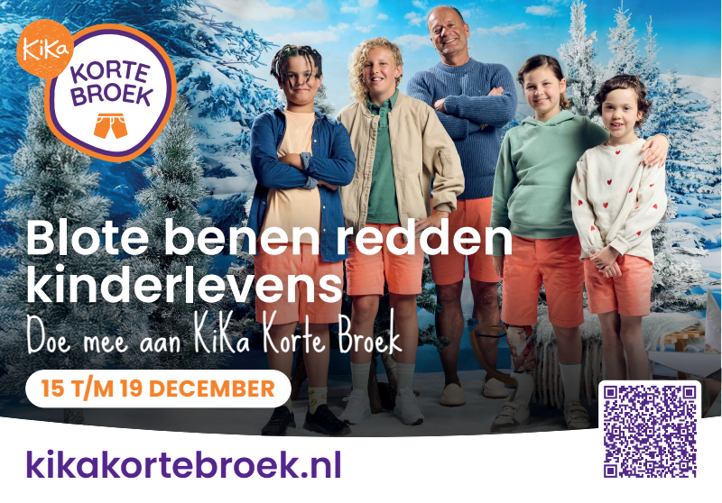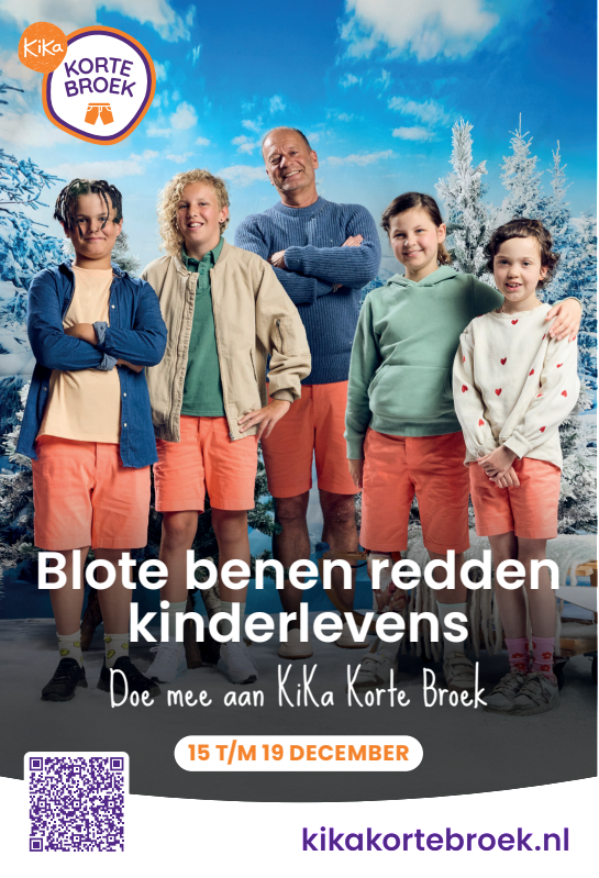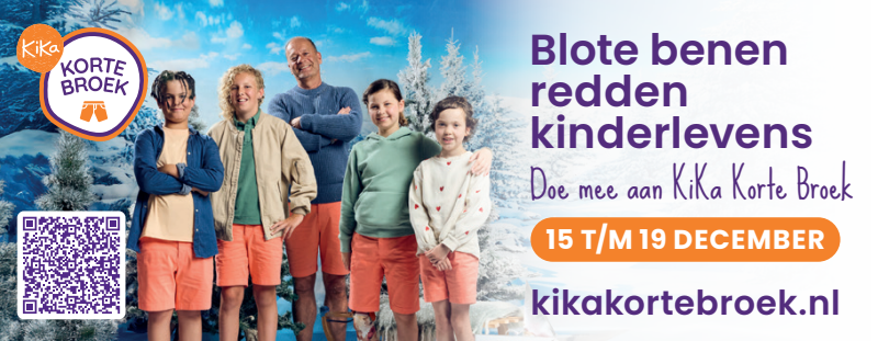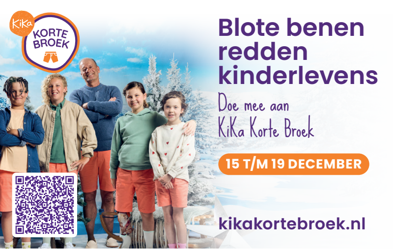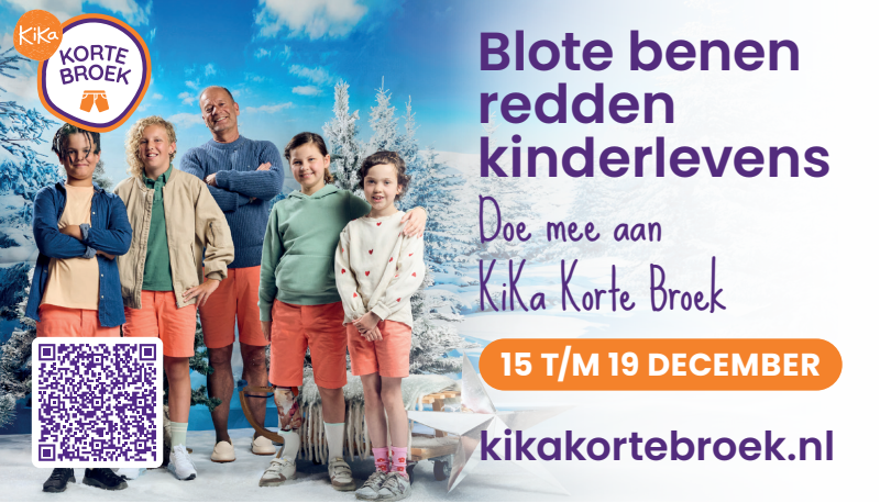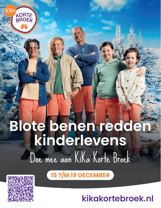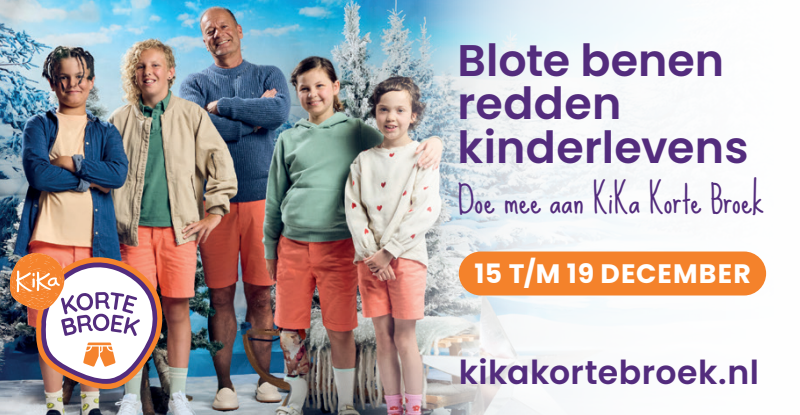 Van 15 t/m 19 december dragen we massaal een korte broek. Waarom? Om aandacht te vragen én geld in te zamelen voor kinderen met kanker. Of je nu meedoet met je klas, sportclub, collega's of vriendengroep. Of je nu jong of oud bent. Iedereen kan meedoen met KiKa Korte Broek. Samen in korte broek voor KiKa. Want blote benen redden kinderlevens.