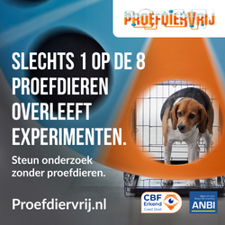 Met onze campagne “1 op de 8” confronteren we Nederland op een begrijpelijke, visuele manier met het onnodige leed in dierproeven. Zonder te choqueren, maar wel met effect. De boodschap is glashelder: dit kan én moet anders.