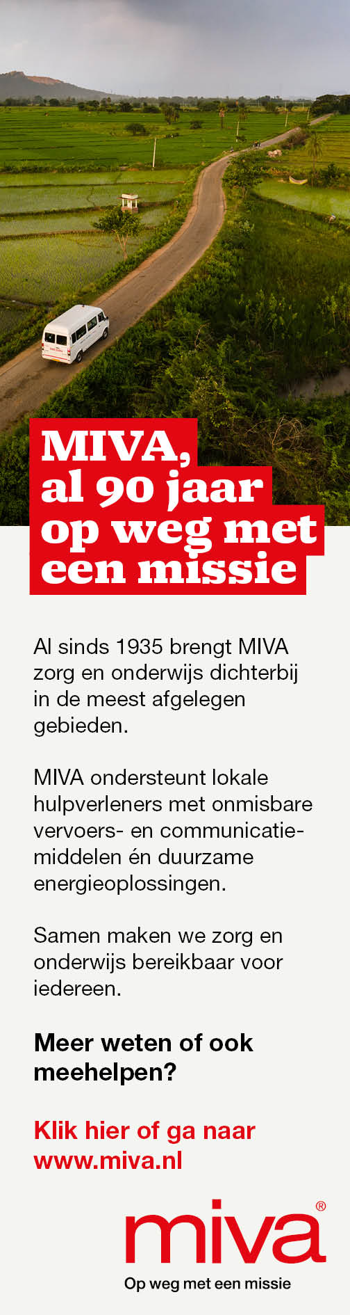Dankzij bijna een eeuw ervaring en het opgebouwde netwerk kan MIVA lokale hulpverleners voorzien van het juiste vervoers- of communicatiemiddel en duurzame energie. Zo vergroot MIVA hun bereik waardoor zij in staat zijn om meer mensen te helpen. Juist op die plekken waar de hulp het hardst nodig is en levens kan redden.