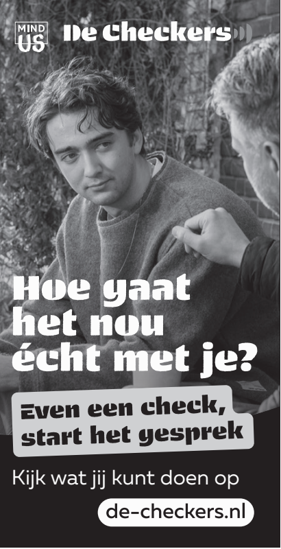 Met DE CHECKERS Tool kunnen volwassenen leren hoe ze een gesprek starten. Help deze campagne te verspreiden door deze te plaatsen in een krant of tijdschrift.