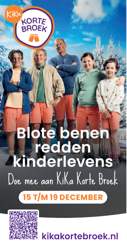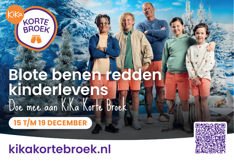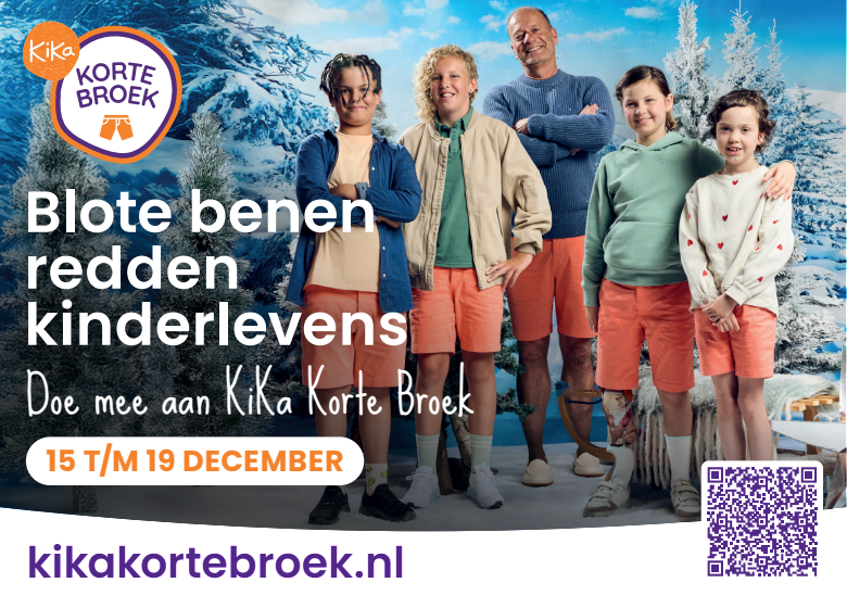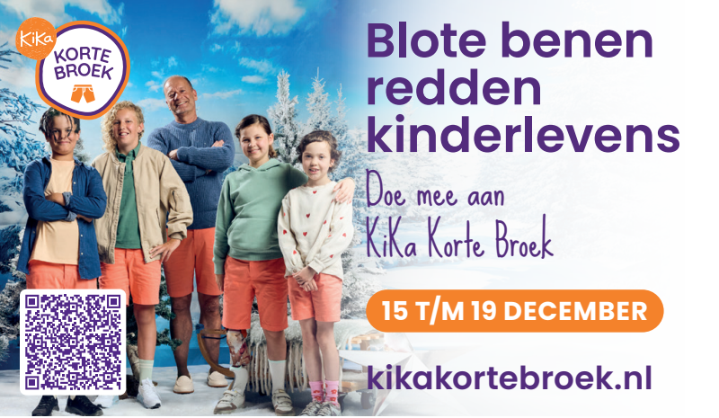 Van 15 t/m 19 december dragen we massaal een korte broek. Waarom? Om aandacht te vragen én geld in te zamelen voor kinderen met kanker. Of je nu meedoet met je klas, sportclub, collega's of vriendengroep. Of je nu jong of oud bent. Iedereen kan meedoen met KiKa Korte Broek. Samen in korte broek voor KiKa. Want blote benen redden kinderlevens.
