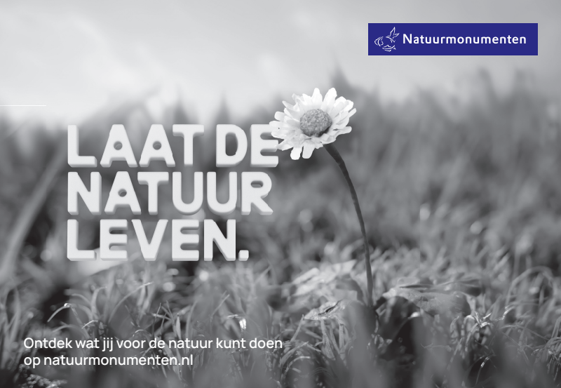 Natuurmonumenten zet zich in voor een natuurrijker Nederland. We maken ons sterk voor het herstel van de biodiversiteit, overal in het land. Dat is hard nodig, want onze natuur verarmt en verdwijnt. Maar we kunnen het tij keren. Als je natuur de ruimte geeft, keren plant- en diersoorten terug. Met elkaar kunnen we zorgen dat Nederland weer natuurrijker wordt: vol zingende vogels, zoemende insecten en bloeiende planten. Dat doen we samen met alle natuurliefhebbers.