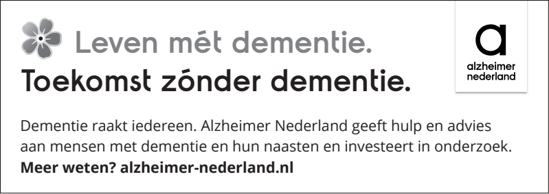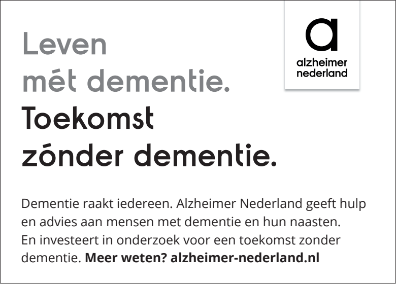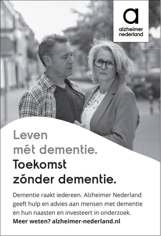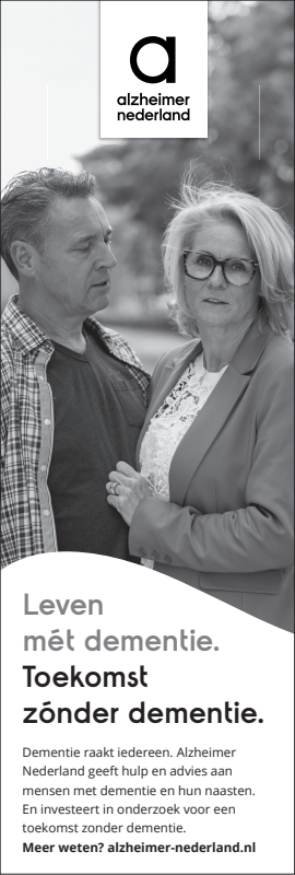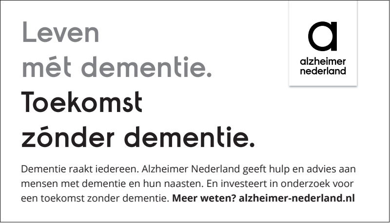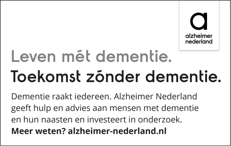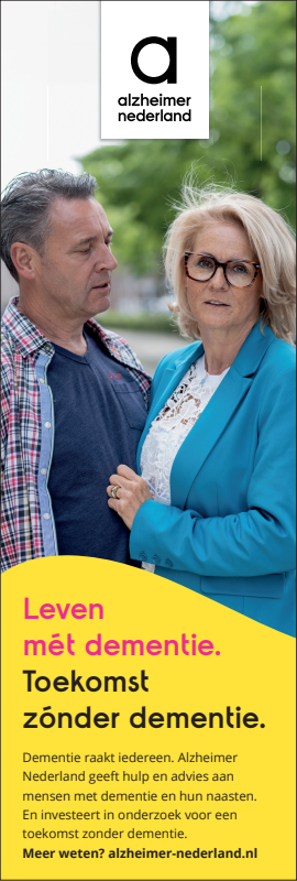 Dementie raakt iedereen. Alzheimer Nederland geeft hulp an advies aan mensen met dementie en hun naasten. En investeert in onderzoek voor een toekomst zonder dementie.